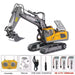 Multi-channel RC excavator with 680° rotation, mining function, lighting, and one-click demo.